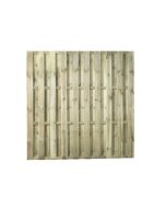Dit naaldhouten scherm is vacuümdruk verduurzaamd (geïmpregneerd), gespijkerd, 19 planken 10x100 mm, 4 regels 20x45 mm