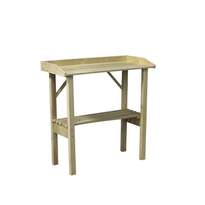 Deze naaldhouten PEFC gecertificeerde oppottafel is vacuümdruk verduurzaamd (geïmpregneerd) en universeel overschilderbaar. 88x85x41,6 cm